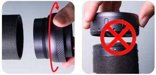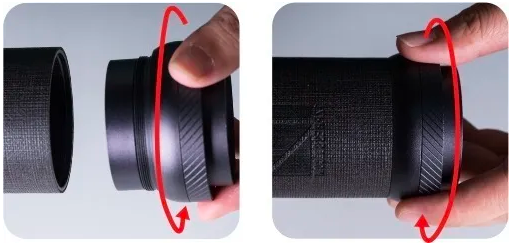 ![]() | Houd het slingergedeelte dicht bij het houten gedeelte. Draai de knop en druk hem in. |