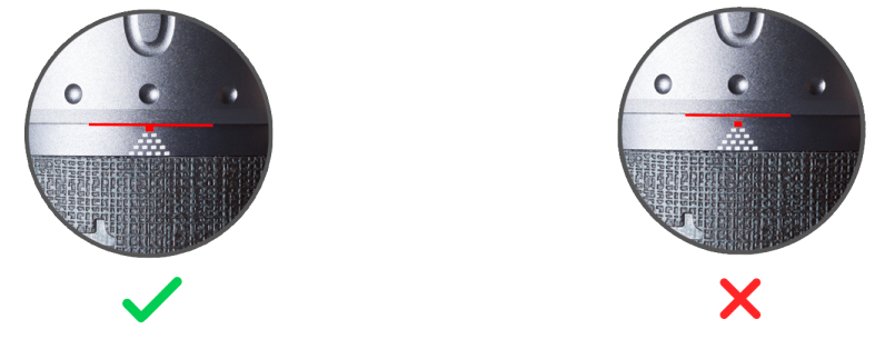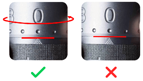 ![]() | Lijn de #0 uit met de schaalverdeling en de onderkant. rand van de verstelring raakt de eerste niveau van de schaalmarkering. |