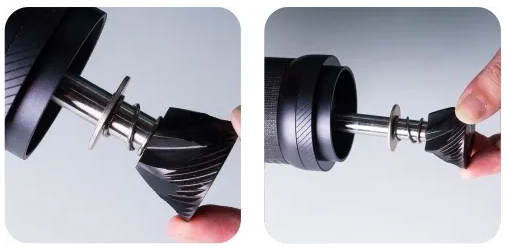 - Doe de koffiebonen in de trechter en draai de hendel met de klok mee om het malen te starten.