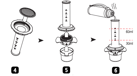 ![]() | KAMER (Materiaal: Polyethersulfon PES) De maatcilinderkamer is gemaakt van milieuvriendelijk materiaal en wordt gebruikt om heet water vast te houden. Er is een schaalverdeling gegraveerd om het nauwkeurige watervolume te meten (30 ml - 60 ml) |