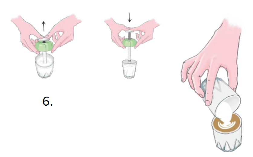 - Open het deksel van de pomp en vul de watertank met heet water (50-80 ml, 85+ °C).