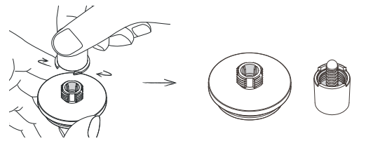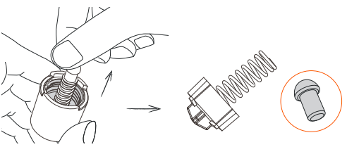 3. Verwijder het kleine zwarte siliconen onderdeel in de lange veer. Monteer het mondstuk weer. Zorg ervoor dat je dat kleine zwarte onderdeel niet kwijtraakt.