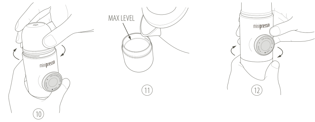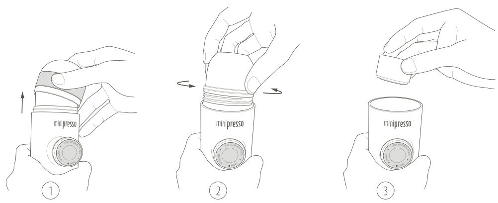 - Drink nooit vloeistof rechtstreeks uit de MiniPresso, aangezien de inhoud heet kan zijn.
