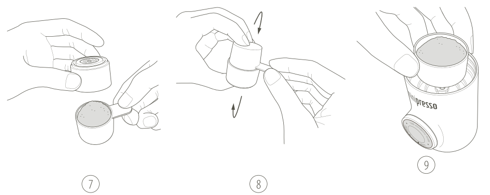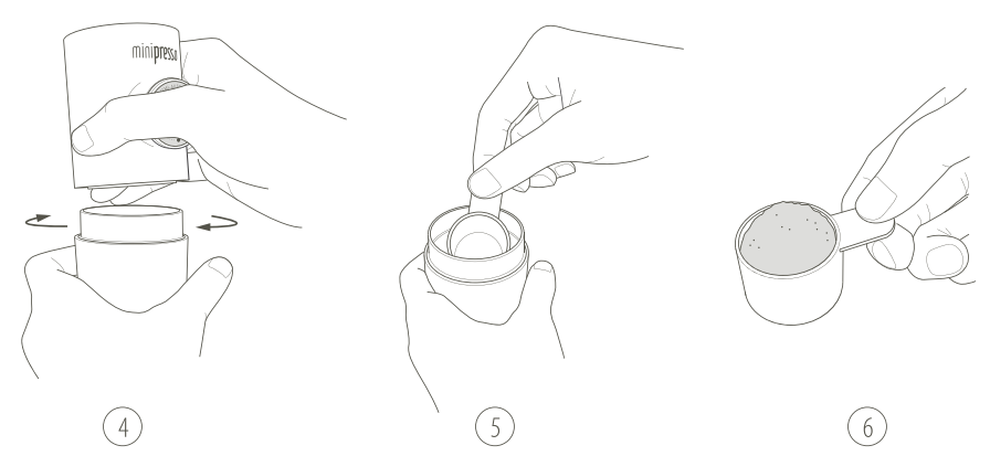 6. Vul de maatschep met gemalen koffie.