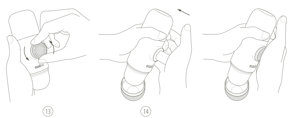 13. Ontgrendel de zuiger uit de slagpositie door hem naar links te draaien.