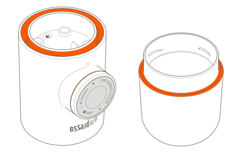 - Verwarm alle MiniPresso onderdelen en het kopje voor door een cyclus te draaien met alleen heet water.